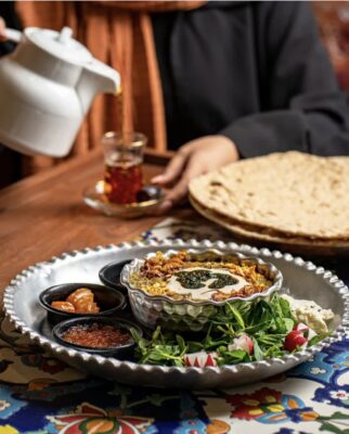 مجموعه پذیرایی که در آن غذاهای متنوع با استفاده از محصولات ارگانیک و با استانداردهای تعریف گردیده در طب سنتی طبخ و تقدیم میهمانان می گردد . نکته قابل ملاحظه در سفره ایرانی ، تهیه ، آماده سازی و طبخ مواد زیر نظر پزشک می باشد .
